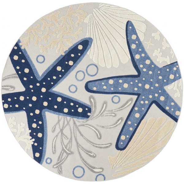 8 ft. Round Blue & Gray Indoor & Outdoor Area Rug