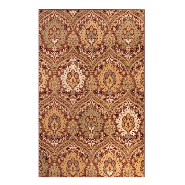8 x 10 ft. Floral Stain Resistant Rectangle Area Rug - Red - Olive & Gold (Discontinued)