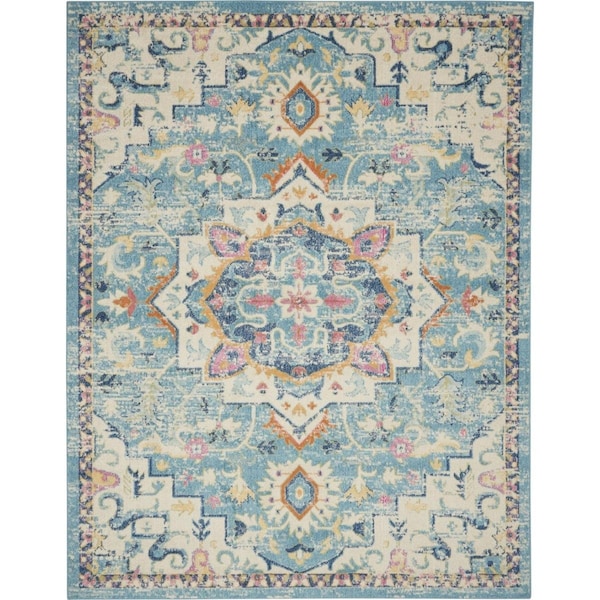 8 x 10 ft. Light Blue & Ivory Distressed Area Rug