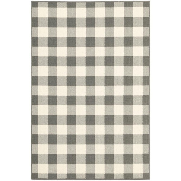 8 x 11 ft. Gray & Ivory Gingham Indoor & Outdoor Area Rug