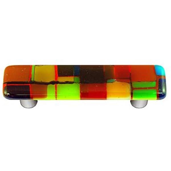 Glass Knobs and Pulls are handcrafted using high quality handmade materials. Each piece is unique and will be a beautiful accent to a variety of cabinet or furniture designs. Features: -Material - Glass. -Style - Artisan. -Type - Pull. -Collection - Mosaic. -Color - Multiple Color. -Post - Aluminium. -Handmade. -Dimension - 1 x 4 x 1 1/8 in. -Item Weight - 0.0375 lbs.