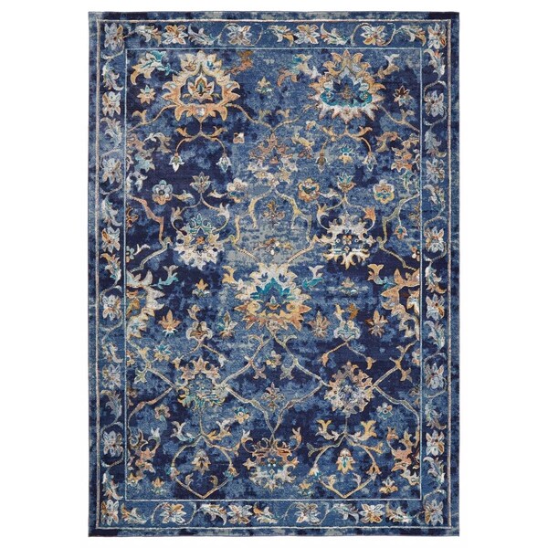 Blue & Gold Jacobean Area Rug - 4' x 6' (Discontinued)