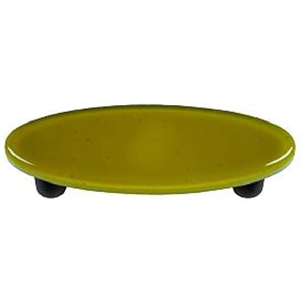 Chartreuse Oval Glass Cabinet Pull - Black Post