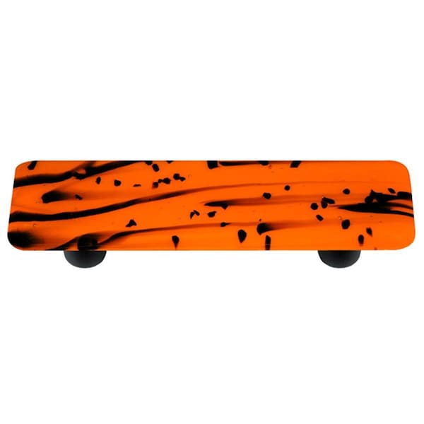 Mardi Gras Black with Orange Rectangle Glass Cabinet Pull - Black Post