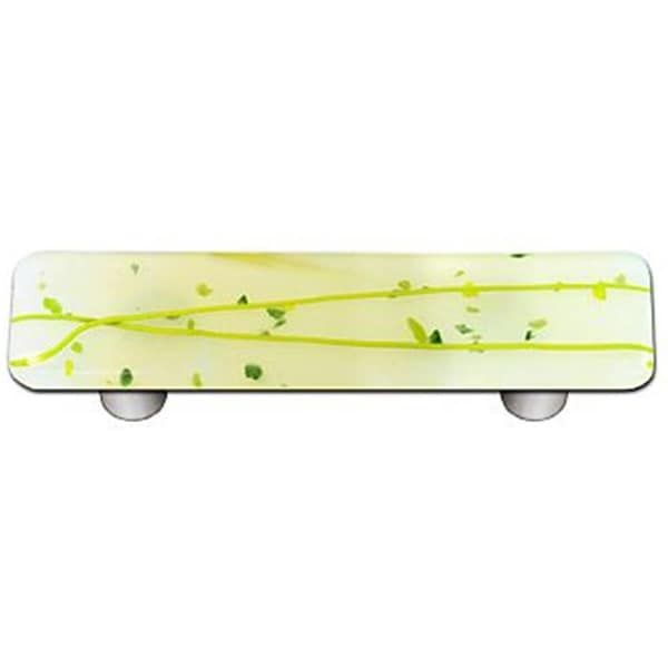 Mardi Gras Spring Green with White Rectangle Glass Cabinet Pull - Aluminum Post