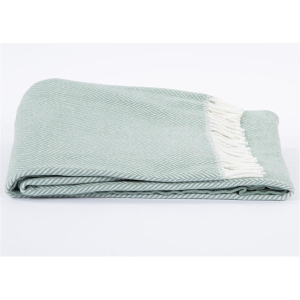 Seaglass Green & White Dreamy Soft Herringbone Throw Blanket (Discontinued)