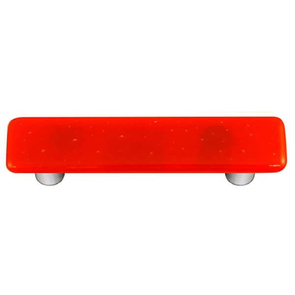 Tomato Red Rectangle Glass Cabinet Pull - Aluminum Post