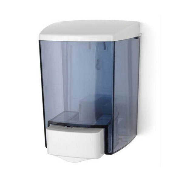 The Manual Bulk Foam Soap dispenser is made of impact resistant plastic in a translucent smoke color. The 46 oz container accepts most bulk foam soaps. Container is removable, by simply sliding container off of back plate, making filling, cleaning and routine maintenance easy. Dispenses approximately .4 ml per stroke. Dispenser is translucent for an easy view of soap supply. The large push bar meets ADA requirements. Installs with mounting tape or screws.