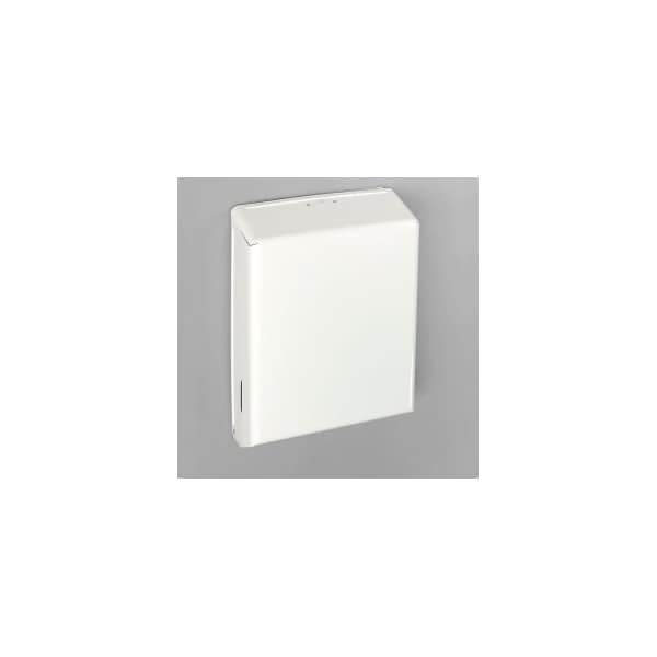 TOWEL DISPENSER IS WALL MOUNTABLE FOR SPACE SAVING CONVENIENCE. ALLOWS FOR EASY TOWEL REMOVAL AND REDUCES MULTIPLE DISPENSING. WHITE ENAMEL FINISH IS RUST PROOF, CORROSION RESISTANT CONSTRUCTION. FEATURES TAMPER-PROOF TOP WITH DOUBLE LATCH LOCK WORKS AND STANDARD METAL KEY. HEAVY GAUGE METAL BACK AND DURABLE WHITE FRONT.
