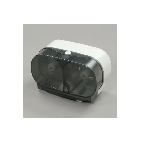Toilet paper dispenser transparent - horizontal holds 2 rolls measuring 5 diameter each. Made of impact resistant plastic. Light gray base with transparent front to provide view of paper status. order compatible supplies for your dispenser.