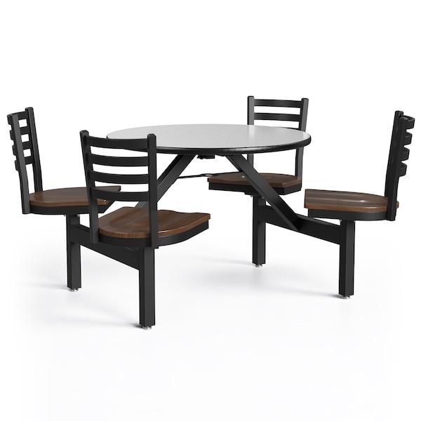 - • This cluster table comes with multiple laminate top finish options as well as multiple wood stain options for the seats, allowing you to build a combination that will work in any space.