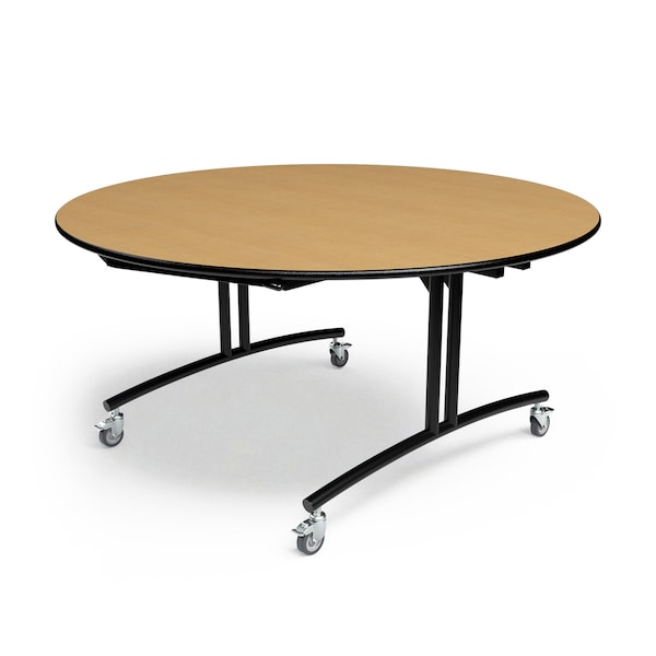Round Folding Table, 60 in W, 30 in H, Fusion Maple