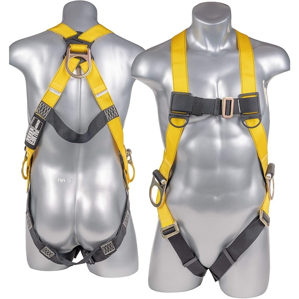 - 3 point adjustment, dorsal D-ring for fall arrest, two lateral D-rings at waist for positioning, adjustable chest straps, and adjustable mating buckle leg straps. Palmer Safety Full Body Harnesses are designed for use by persons with a combined weight (clothing, tools, etc.) of 130 – 310 lbs. (59 -140 kg).