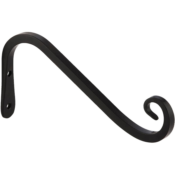 Wrought iron bracket ideal for hanging plants bird feeders wind chimes and other decorations. Black powder-coated finish. All brackets include stainless steel hardware for easy installation.