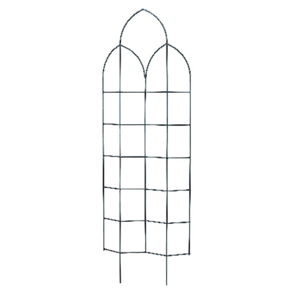 Glorify your garden with the Panacea Spires Trellis with Offset. A gothic inspired arch tops the trellis with two smaller arches overlapping it. The horizontal and vertical support rods form a windowpane pattern. The rods are angled outward or inward creating offset panels in the structure. This allows plants to be grown both behind and through the trellis for a thicker array of greenery. The metal construction will withstand harsh weather for several years and the black color will blend into any surrounding. The Spires Trellis with Offset will elevate your garden style year after year.