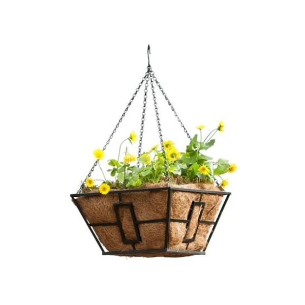 Products 14 in. Square Hanging Plant Basket, Black Steel