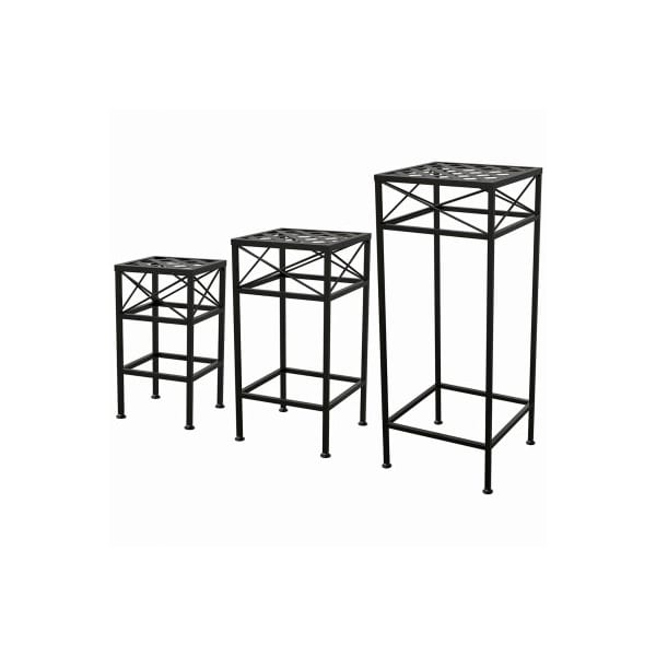 3Piece Nested Cross Hatch Square Plant Stands includes 1 of each size, 15 in H, 21 in H and 30 in H Tables are designed to nest inside each other, providing spacesaving convenience for easy storage Place throughout the room to display plants or decorative items matte black finish and cross hatch design fits well with any room decor The feet of the nesting tables are designed to avoid scratches on the floor 3piece table set's clean, modern lines look great in your sunroom, patio or any room in the house Sturdy metal construction with powder coated finish for durability