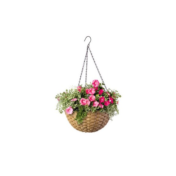 Green Thumb, 14D, Natural, Round, Resin Wicker Hanging Basket, Metal Resin Wicker Composition
