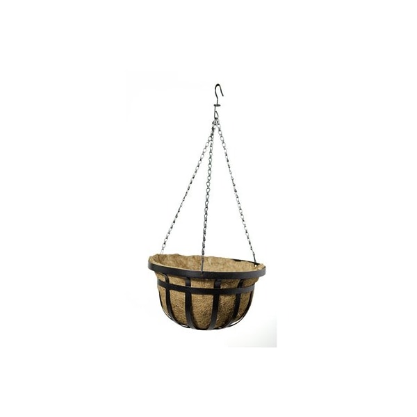 Green Thumb, 14, Black, Round, Flat Iron Style, Hanging Basket, Powder Coated Steel, Includes Coco Liner, Chain Hook