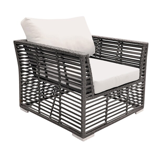 The Panama Jack Graphite Lounge Chair with Cushions is perfect for any outdoor living area. The see-through grey fiber hand woven over aluminum frames makes for a sleek and modern design that is resistant to corrosion and scratching. It can be combined with other items from the Graphite collection to create an outdoor living area perfectly suited to your needs. The lounge chair comes with cushions in an off-white outdoor polyester fabric, or you can choose from our many Sunbrella outdoor fabric options for added comfort.