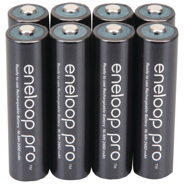 eneloop XX 8 pack of AAA Batteries from Panasonic deliver up to 950mAh of performance for long-lasting, high-power capacity applications. XX batteries are the perfect choice for powering high current consuming devices such as DSLR photo strobe flash units, often providing more than twice the number of flashes per recharge in less than half the time of conventional alkaline batteries. These batteries will work down to -4deg F.