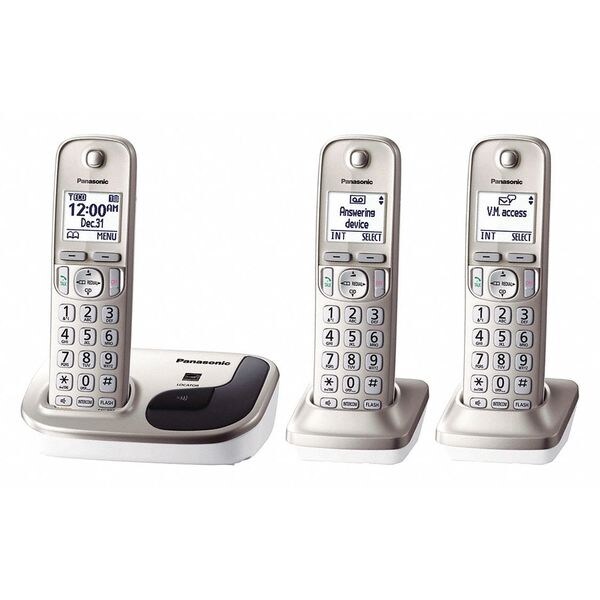 Telephone, Call Waiting Yes (with Subscription), Speakerphone Yes, Voicemail Yes, Volume Control Yes, Number of Handsets 3, Number of Lines 1, Caller ID Yes (with Subscription), Color Champagne Gold, Includes (3) Cordless Digital Handsets, Belt Clip, Phone Base