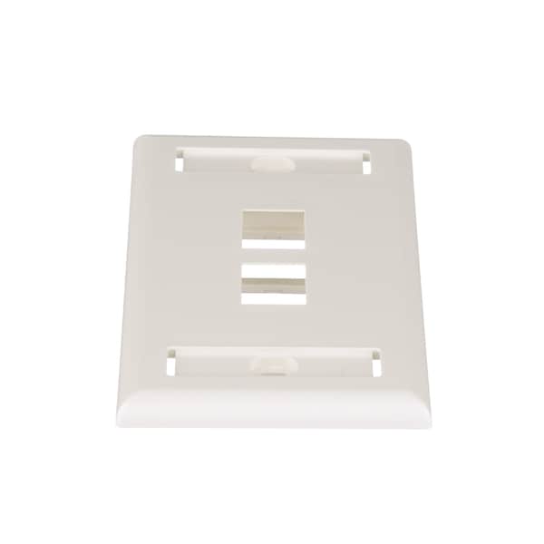 The NetKey Faceplate accepts two keystone modules. The faceplate is single gang and mounts to a NEMA standard single gang opening. The faceplate includes a label pocket for easy identification and is off white.