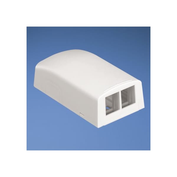 The NetKey Surface Mount Box is plenum rated and accepts two keystone modules. The box offers a variety of mounting options using adhesive tape, screws, or optional magnet. The box can be identified with an adhesive label and is electric ivory.