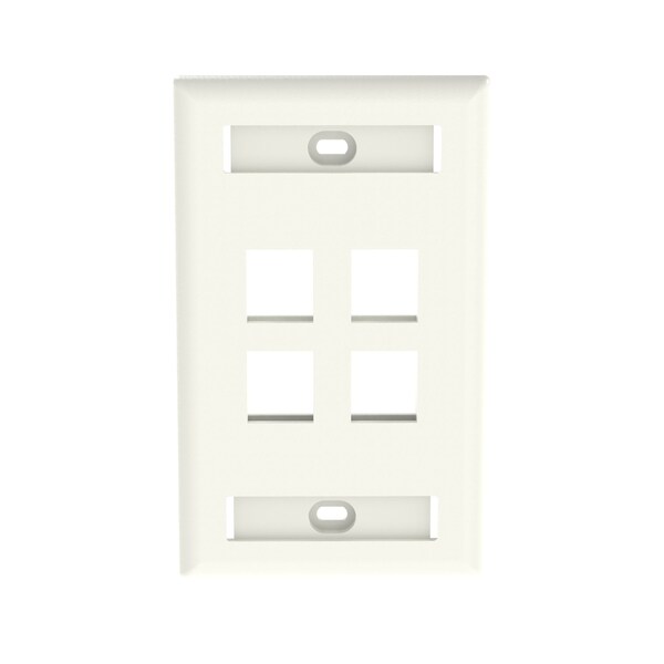 The NetKey Faceplate accepts four keystone modules. The faceplate is single gang and mounts to a NEMA standard single gang opening. The faceplate includes a label pocket for easy identification and is off white.