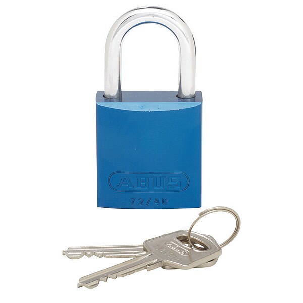 Aluminum body padlock, 1.06" shackle, blue.