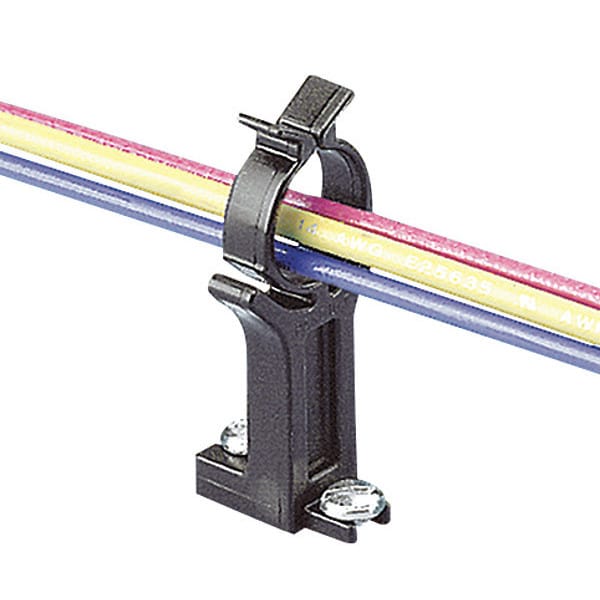 Bundle retainer, #6 screw (M3), .75" (19.1mm) bundle, .95" (24.1mm) standoff height, impact resistant nylon 6.6, black.