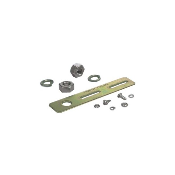 (1) Bracket, (2) 1/2-13 Heavy Hex Nuts, (2) 1/2 inch Helical Spring Lockwashers, (2) #10-32x1/2 Pan Head Slotted Machine Screws, (2) #10-32 Hex Machine Screw Nuts, (2) #10 Helical Spring Lockwashers.(2) #10-32 HEX MACHINE SCREW NUTS,(2) #10 HELICAL SPRI