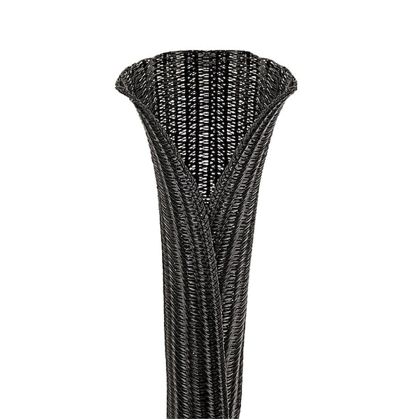 Braided Expandable Sleeving, .375" diameteRaceway (9.53mm), provides continuous Abrasion Resistance for Wires, Cables and Tubing. The highly flexible open Weave will not trap heat or humidity, Black, Polyethylene Terephthalate, 150 ft. per Reel.