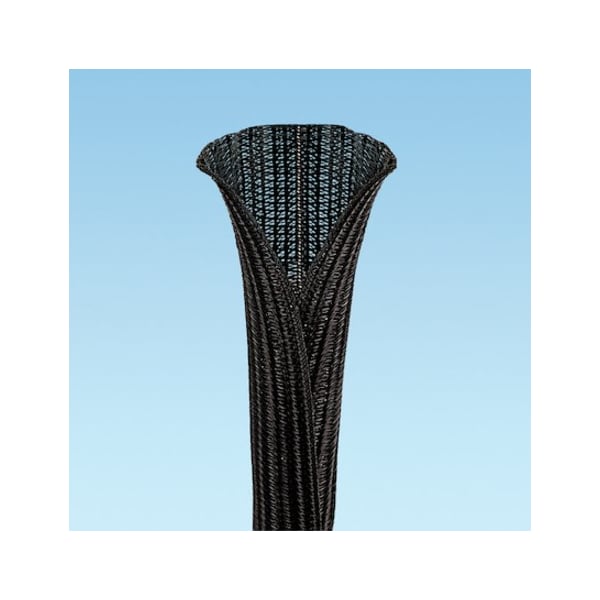 Pan-WrapTM Braided Expandable Sleeving, 0.50" diameter, black, flame retardant, polyethylene terephthalate, 150 ft. per reel.
