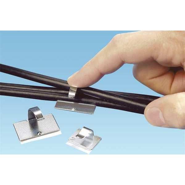 Cable Clip, Steel, 1/4 in Bundle Dia., Silver, 0.77 in L, 100 PK
