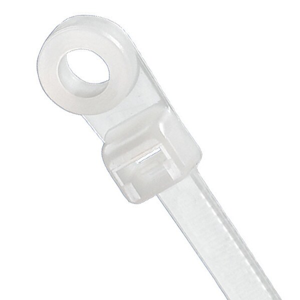 Cable Tie, Mountable, Actual Length 4.3 in, Width 0.1 in, Nominal Length 4 1/2 in, Locking Style Plastic Pawl, Color Natural, Basic Material - Cable Tie Nylon, Tensile Strength 18 lb, Halogen-Free, Low-Smoke, Plenum Rated, Miniature, Mounting Method Screw Mount, Nominal Max. Bundle Dia. 3/4 in, Temp. Range -76 Degrees to 185 Degrees F, Number of Straps 1, Flame Retardant No, Metal Detectable No, Outdoor Use No, Plenum Rated Yes, Screw Mount Hole Size #4, UL Type 2, 21, Thickness 0.05 in