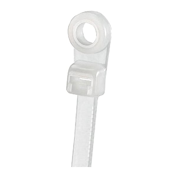 Cable Tie, Mountable, Actual Length 7.9 in, Width 0.19 in, Nominal Length 8 in, Locking Style Plastic Pawl, Color Natural, Basic Material - Cable Tie Nylon, Tensile Strength 50 lb, Halogen-Free, Low-Smoke, Plenum Rated, Standard, Mounting Method Screw Mount, Nominal Max. Bundle Dia. 2 in, Temp. Range -76 Degrees to 85 Degrees F, Number of Straps 1, Flame Retardant No, Metal Detectable No, Outdoor Use Yes, Plenum Rated Yes, Screw Mount Hole Size #10, UL Type 2, 21, Thickness 0.05 in