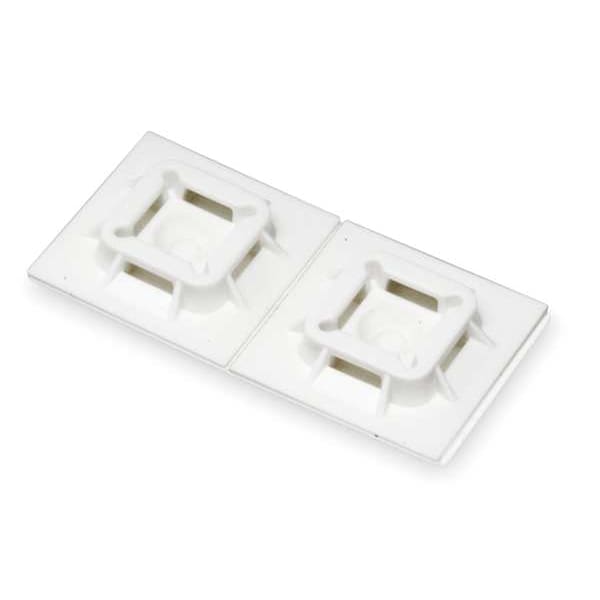 Cable Tie Mounting Base, Number of Entries 4, Slot Width 0.25 in, Slot Height 0.06 in, Adhesive Mount, Material Nylon 6/6, Color White, Length 1 in, Width 1 in, Height 0.24 in, 1 in L x 1 in W x 0.24 in H, Temp. Range -104 Degrees to 185 Degrees F, Flame Retardant No, Metal Detectable No, For Use With Miniature, Intermediate and Standard Cable Ties, Standards CE Compliant, RoHS Compliant, Max. Temp. Rating 185 Degrees F, Min. Temp. Rating -20 Degrees F, Package Quantity 100