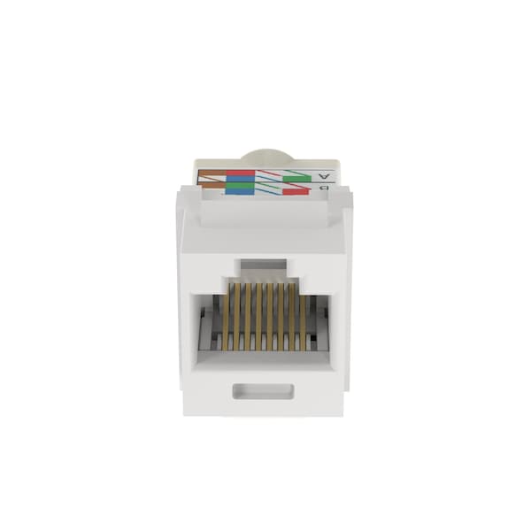 The NetKey Cat 6 UTP TP Keystone Jack Module is designed to terminate 4-pair, 22–26 AWG twisted pair cable. Each module is 100% factory tested to exceed industry standard performance requirements. Contacts are plated with 50 microinches of gold for superior performance. Jacks are individually serialized for traceability and are compatible with keystone interfaces such as NetKey Faceplates, Modular Patch Panels, and Surface Mount Boxes. The jack module is white.