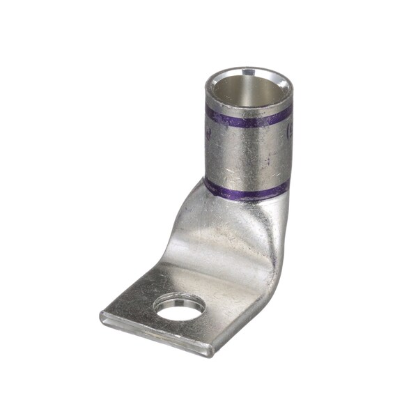 Copper Compression Lug, 1 Hole, 4/0 AWG, Short Barrel, 3/8 (9.5mm) Stud, 90° Bent