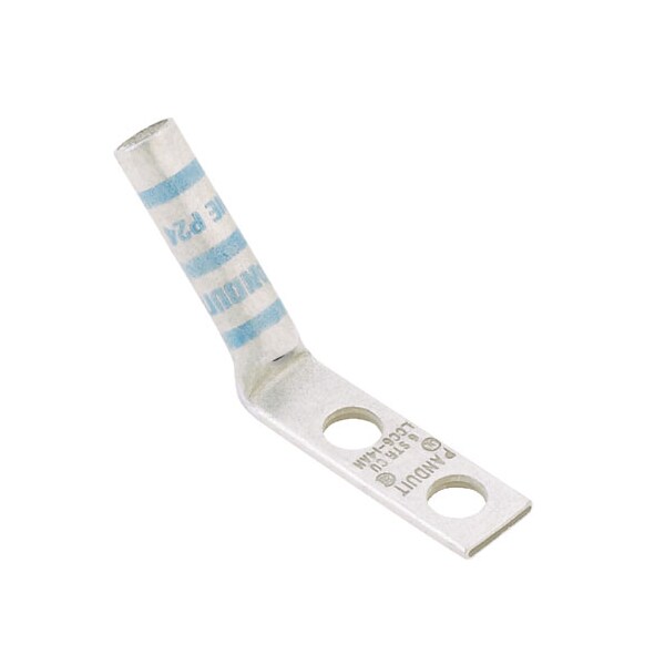 Copper Compression Lug, 2 Hole, #1 AWG Flex, 1/4 (6.4mm) Stud, 45° Bent