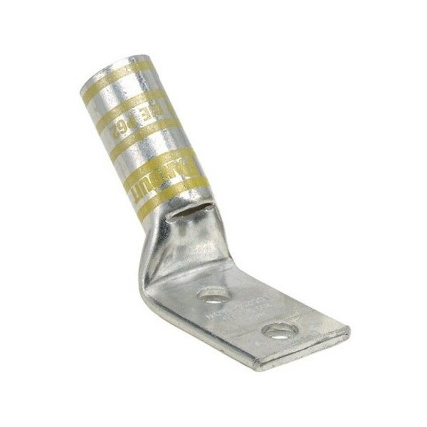 Copper Compression Lug, 2 Hole, #4 - #3 AWG STR, #2 AWG SOL, #10 (4.8mm) Stud, 45° Bent