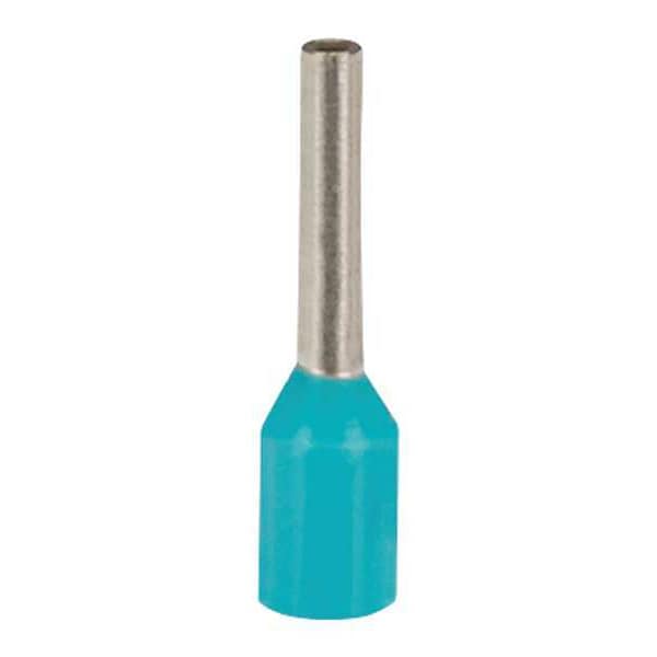 Wire Ferrule, Contact Finish Tin, Contact Material Copper, Ferrule Diameter 0.04 in, Ferrule Material Copper, Insertion Length 3/8 in, Insulation Color Turquoise, Insulation Material Polypropylene, Maximum Operating Temperature 221 Degrees F, Minimum Wire Size 24 AWG, Maximum Wire Size 22 AWG, Termination Style Crimp, Standards CSA C22.2 No. 291-14, DIN 46228 Part 4, Barrel Diameter 0.07 in, Barrel Finish Tin Plated, Barrel Length 0.25 in, Barrel Material Copper