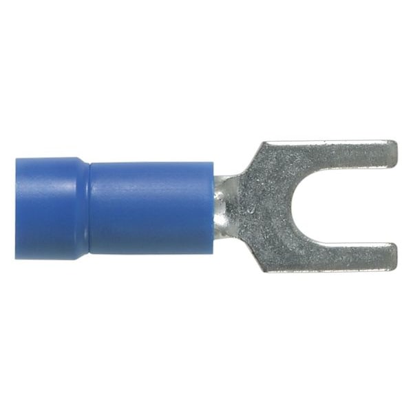 Fork Terminal, #10 Stud Size, 14 AWG, 600 V, Vinyl Insulated, Blue, Crimp Termination Only, 100 PK