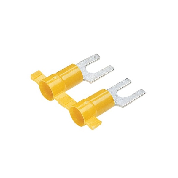 Fork Terminal, #6 Stud Size, 10 AWG, 600 V, Vinyl Insulated, Yellow, Crimp Termination Only