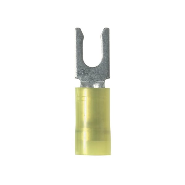 Fork Terminal, #6 Stud Size, 10 AWG, Nylon Insulated, Yellow, 500 PK