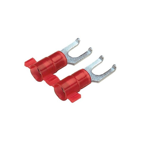 Fork Terminal, #6 Stud Size, 18 AWG, 600 V, Nylon Insulated, Red, Crimp Termination Only, 3000 PK