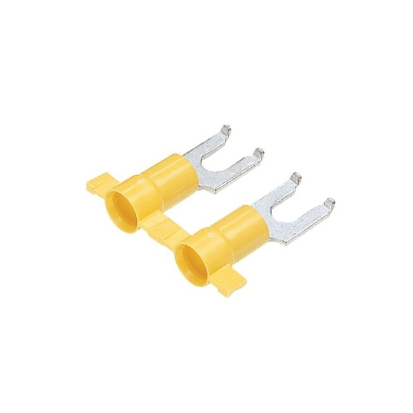 Fork Terminal, #8 Stud Size, 10 AWG, 600 V, Vinyl Insulated, Yellow, Crimp Termination Only