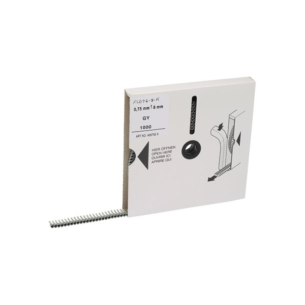 Insulated Ferrules on Mini-Reel, single wire, 18 AWG (0.75mm2), 0.31 (8.0mm) pin length, gray DIN end sleeve.