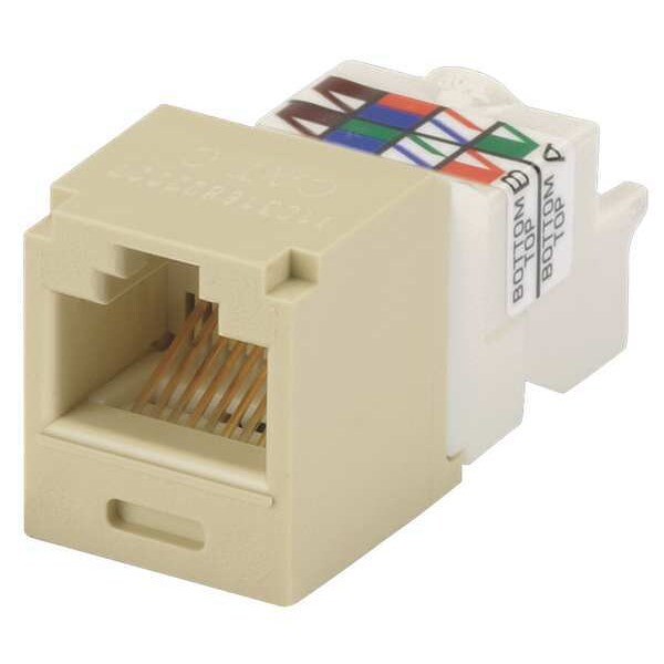 Modular Jack, Termination Type Tool-Less, Compatible Cable Performance Category 6, Compatible Connector Type RJ45, Color Ivory, RCA Insulator Color Ivory, Number of Ports 1, Overall Depth 1 3/8 in, Overall Height 3/4 in, Overall Width 5/8 in, Resistance Properties Flame/Fire Resistant, Standards ANSI/TIA-568.2-D, IEC 60603-7, IEEE 802.3af, IEEE 802.3at, IEEE 802.3bt Type 3 and Type 4, ISO 11801, RoHS Compliant, UL 1863, UL 2043